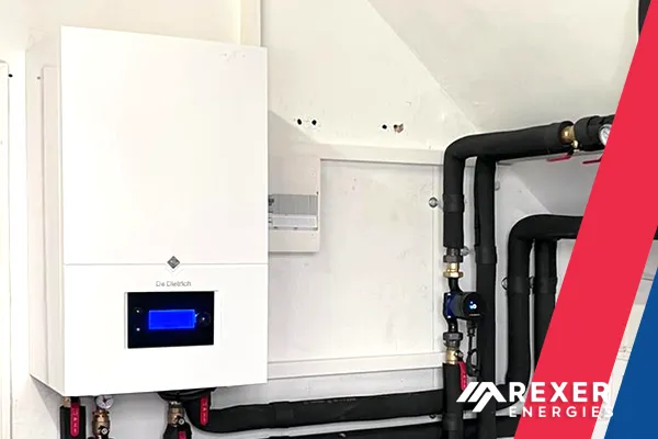 Superbe installation sous un beau soleil d'une pompe à chaleur Air/Eau ALEZIO M R290 De Dietrich pour notre client Laurent dans la jolie commune Igornay en Saône-et-Loire C'est une installation réalisée le 18 Mars 2026 par les poseurs de Rexer Energies France